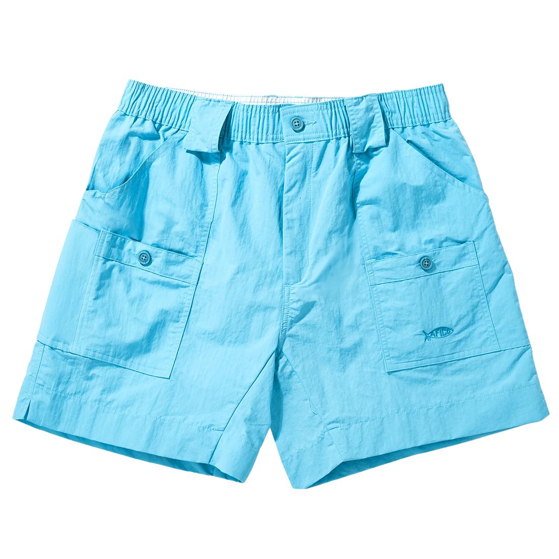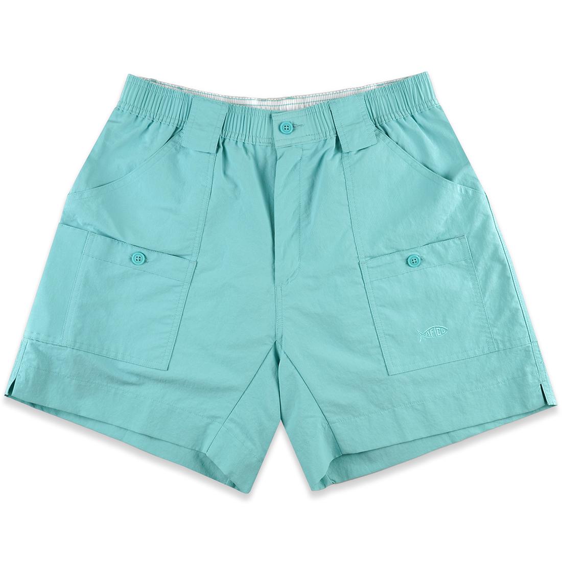 The "Original" AFTCO short. Introduced in 1989 and the choice of serious fishermen worldwide, the men's M01 fishing short is constructed of DuPont™ SUPPLEX® 3-ply nylon and has been treated with a stain resistant coating. It is an extremely strong and supple fabric. Fishermen and outdoorsmen will love the lightweight, super comfortable fit. It has 7 pockets (including a CORDURA® lined pliers pocket) so you will have a place for everything. It also features a double reinforced seat panel for added strength. 27 bar tacks keep these fishing shorts strong in all the right places. AFTCO embroidery on left pocket. 16" outseam length. Elastic waist + belt loops.