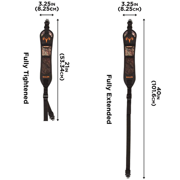 The Hypa-Lite™ Bruiser™ Sling was designed with the Deer Hunter in mind. The sling begins with ultra-durable and lightweight Hypalon construction with molded, low-density foam and non-slip backing. The front of the sling features Mossy Oak® Break-Up Country™ camo in quiet fabric, plus a stretch mesh pocket for a windicator bottle or grunt call and a small Neoprene pocket for a lens cleaning cloth or other small accessories. The body of the shoulder pad is 14-inches long by 3.25-inches wide, and the adjustable web sling is 1-inch wide. Includes D-rings to attach accessories, an adjustable ladder lock buckle and swivels tested up to 500 pounds.