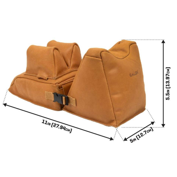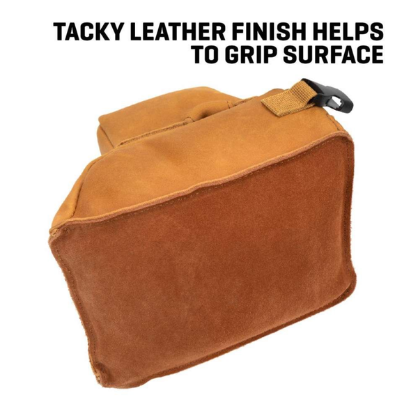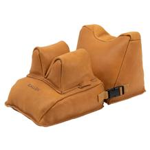 This combo is made of a rich, full-grain leather shell encasing inert poly beads, ensuring both durability and dependability. Once in position, its design secures the rest in place, providing a steady platform for rifle or handgun shooters. For added convenience, both the front and rear rests are equipped with straps featuring side-release buckles, allowing them to be connected, facilitating easy transport to and from the shooting range.
