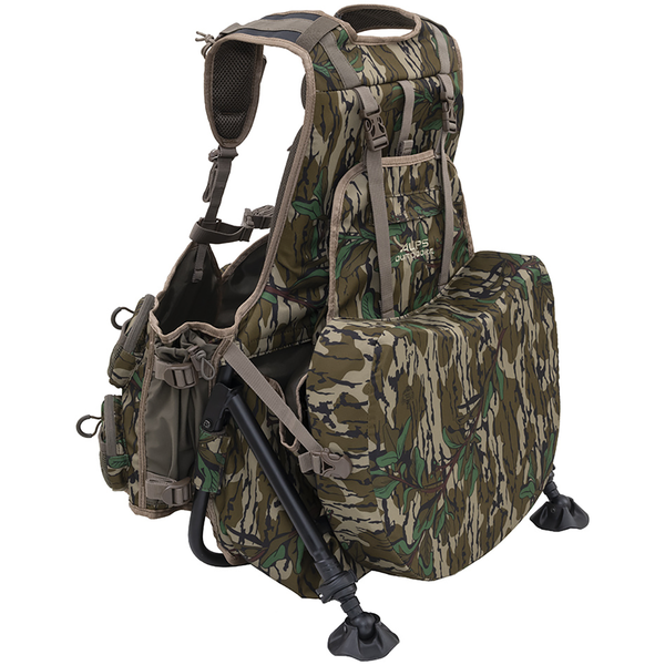 The ALPS NWTF Grand Slam Turkey Vest is the ultimate turkey hunting vest on the market today. Featuring state-of-the-art features such as the "sit anywhere" kickstand frame, a thick padded fold-away seat, a smartphone sleeve that allows you to use your phone while it's still in the pack, and a removable diaphragm call pocket. Among many others, this ground turkey vest delivers. Other features include shell loops, H2O compatibility, side compression straps, two water bottle pockets, detachable shoulder straps, and a protective and silent box call pocket.