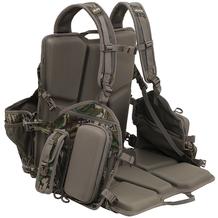 - Redesigned 1" thick molded seat flips down for maximum comfort, and can flip around to support weight in the game bag