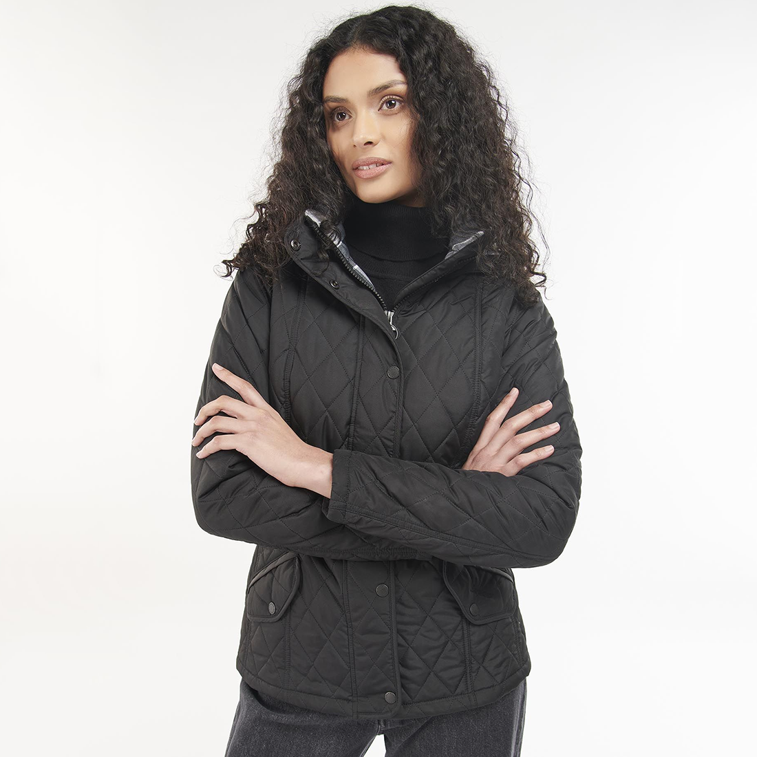 Cut to a flattering, feminine silhouette, this chic quilted jacket is perfect for the cooler months. Featuring a detachable hood and a concealed waist drawcord for the perfect fit, the lining holds the seasonal tartan for a classic finish.