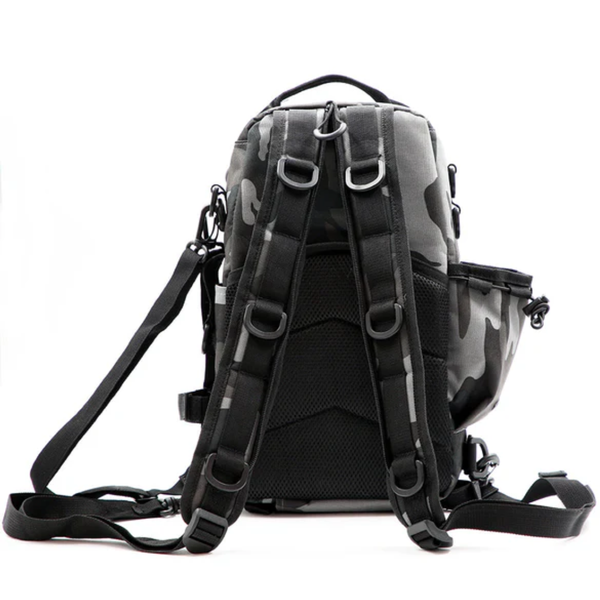 Designed with amazing features for the angler on the go, the BassMooch Hybrid Sling Pack acts as a sling-style backpack with a single shoulder strap but has a zipper that splits the shoulder straps in two to convert to a traditional backpack - making this pack a hybrid sling pack and backpack in one! Featuring five zippered, one velcro, one water and one tool compartment – this pack has a variety of storage options and fits most 3600 model storage containers.