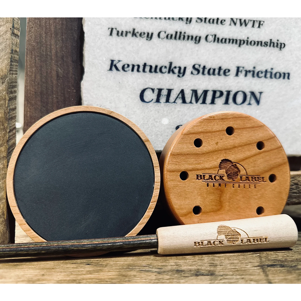 The Black Label Slate call is a must-have for any turkey hunter! This two-piece diamondwood striker with a cherry pot slate surface produces soft sounds for natural-sounding turkey calls and loud yelps and cutts that will make sure your game is spittin' feathers.