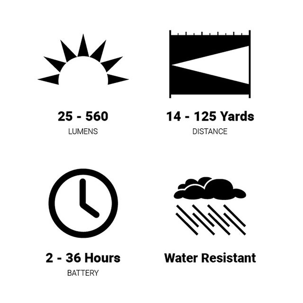 USB rechargeable Wide Angle Plus Technology enabled headlamp. Max 560 lumen output. Dual Fuel: Runs on three standard AAA batteries or USB rechargeable Li-ion battery (both included).