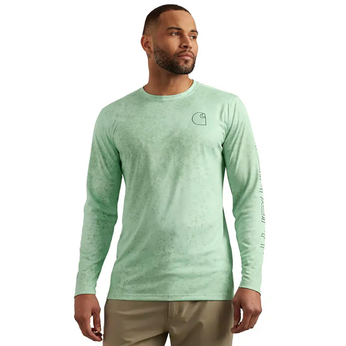When the sun is fierce, this men's Carhartt long-sleeve t-shirt fends off the rays. Yard work or a day on the boat, lightweight, UPF-rated polyester covers you up without weighing you down. It also fights sweat and odor to keep you feeling fresh and focused on the task at hand.