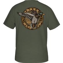 The Circle Mallard T-Shirt is constructed with a 60% cotton and 40% polyester blend which supplies softness and comfort. This t-shirt has a Drake logo on the front pocket and depicts a classic Mallard from the Vintage Drakes Series of back graphic tees.