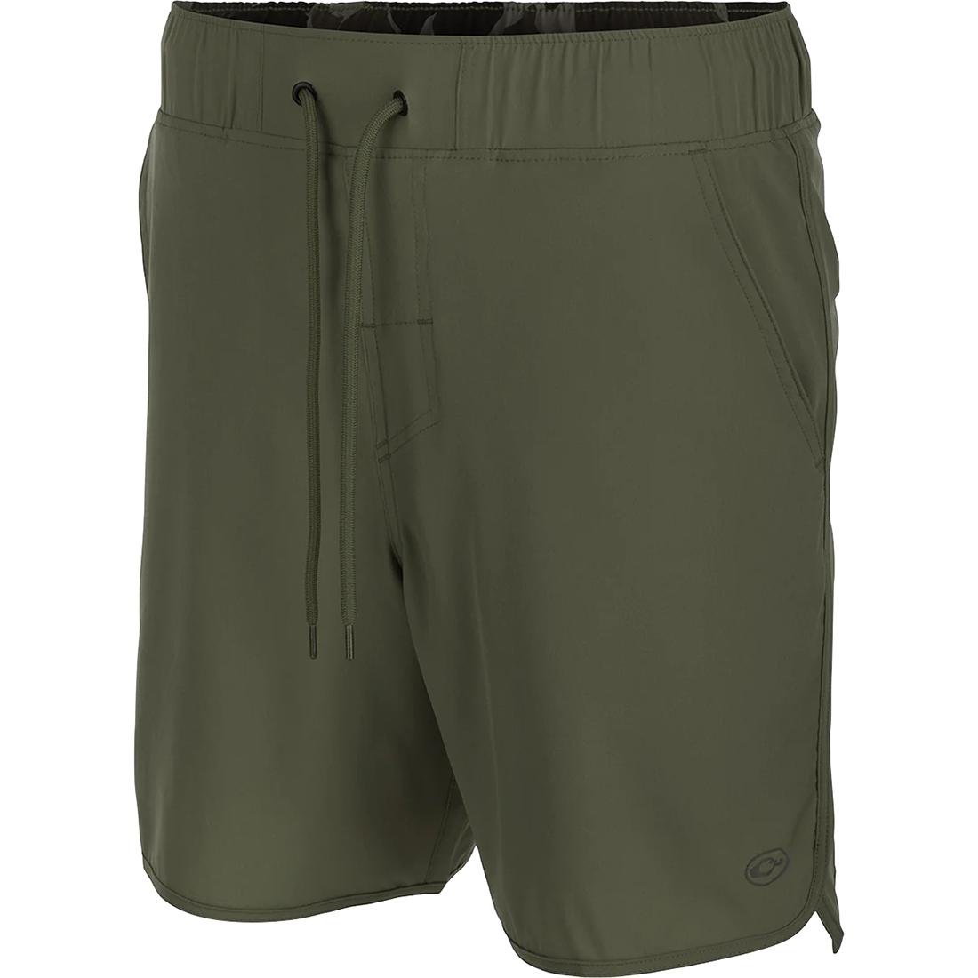 The Drake Commando Lined Volley Short 7" is an extremely versatile short with its own built-in liner. The shell fabric is 88% polyester and 12% spandex, giving you a short with 4-way stretch. The fabric is quick drying and has a durable water-resistant finish to speed up the drying process, it also wicks moisture away from the body. The short has clean lines, with a scalloped hem, two back pockets with hidden zippers, two front slash pockets, a faux fly, and a 7-inch inseam. It has a fully elasticized waistband with an adjustable drawstring to get the fit exactly right.