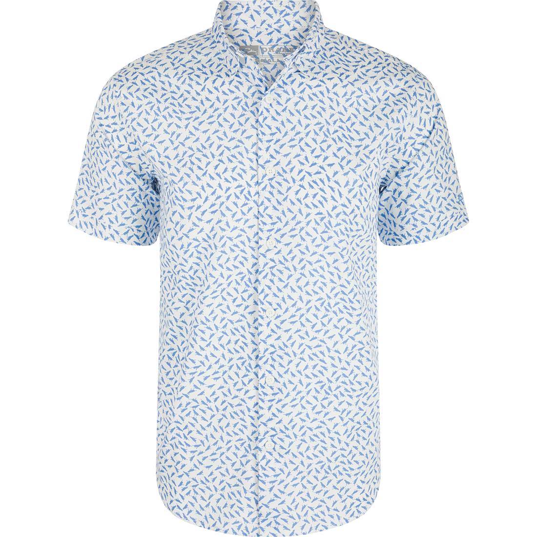 This exclusive lab print short-sleeve shirt is a soft cotton blend poplin fabric to give it stretch for ease of movement. The crisp fabric is lightweight at 125 GSM, it is soft and allows moisture to naturally wick away from the body. The shirt has a classic fit, a hidden button-down collar, a plain front and a sculpted hem which allows you to wear tucked or untucked. Versatile styling allows you to wear the Drake Cotton Lab Print at the office, to dinner or at the beach.