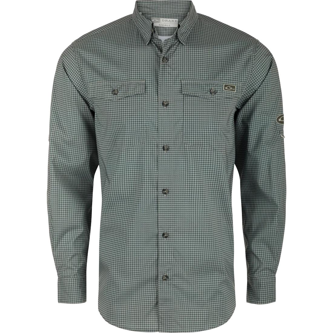 The Drake Frat Gingham Check Button-Down Long Sleeve Shirt is made from 95% Polyester and 5% Spandex. The performance fabric is lightweight at 95 GSM, allowing moisture to wick quickly from the body. It also has a UPF30 rating for sun protection and has a natural stretch for ease of movement. The Drake Frat Gingham has a classic fit, a hidden button-down collar, two button-through flap chest pockets, and a vented cape back. It has a sculpted hem which allows you to wear it tucked or untucked and has an adjustable tab if you want to roll up your sleeves. Inside the hem is a built-in sunglass wipe. Classic styling and technical features put the Drake Frat Gingham Check Shirt in its own class.