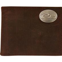 Keep your money and credit cards organized with this stylish leather bi-fold wallet by Drake.