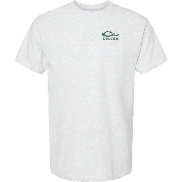 The Drake Waterfowl Cotton Graphic Tee is constructed with 100% Cotton for a soft, comfortable hand feel. The Drake Mallard Blind is non-pocketed, has a Drake logo on the front left chest, and depicts a Mallard watercolor graphic. From our Drake Cotton Series of back graphic tees.