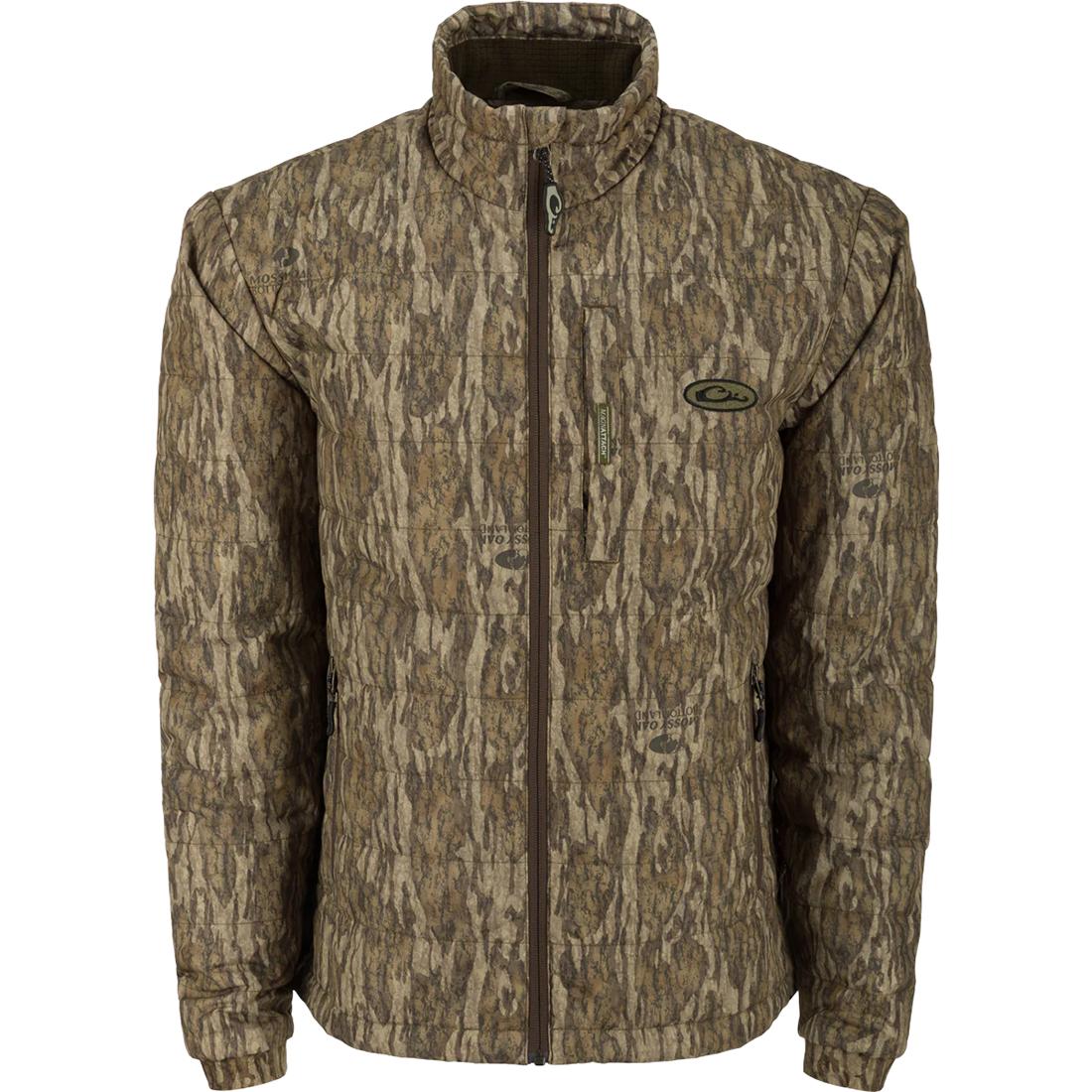 Don't let the light weight fool you - the MST Synthetic Down Pack Jacket is incredibly warm and versatile. The jacket is packable and zips into its vertical chest pocket, making it the perfect size for stowing in a blind bag, ATV, or boat. This jacket has a traditional, horizontal baffle design,?durable, abrasion-resistant, matte-finish shell material, and a drawcord adjustable waist. It works equally well as an outer layer as it does a mid-weight, insulated layering garment. Synthetic down is ultralight, has uniform loft throughout the garment, and won't mat down like natural goose down. The average weight is just 13.2 ounces (size Large). When packed, it measures 10" W x 8" H x 5" D and can be compressed even smaller. The stuff pocket has a carabiner loop for clipping the jacket to a backpack.