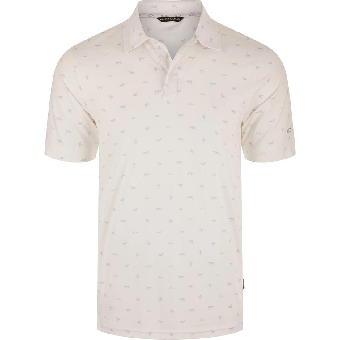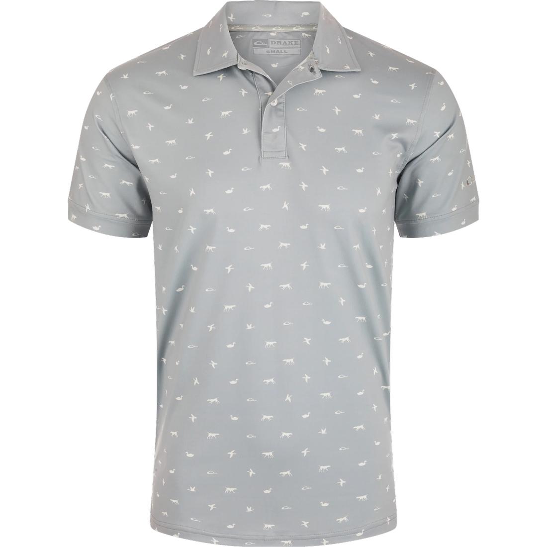 The Drake Performance Polo is timeless in silhouette with a three-button placket with faux mother of pearl buttons, a self-fabric collar and open sleeve cuffs, and a split tail hem. The performance fabric is a substantial, soft fabric with built-in stretch for ease of movement, UPF 30 sun protection, and is moisture-wicking to help keep you cool and dry. The exclusive Drake, Duck, Dog print, and classic styling makes the Drake Performance Polo an excellent addition to your wardrobe.