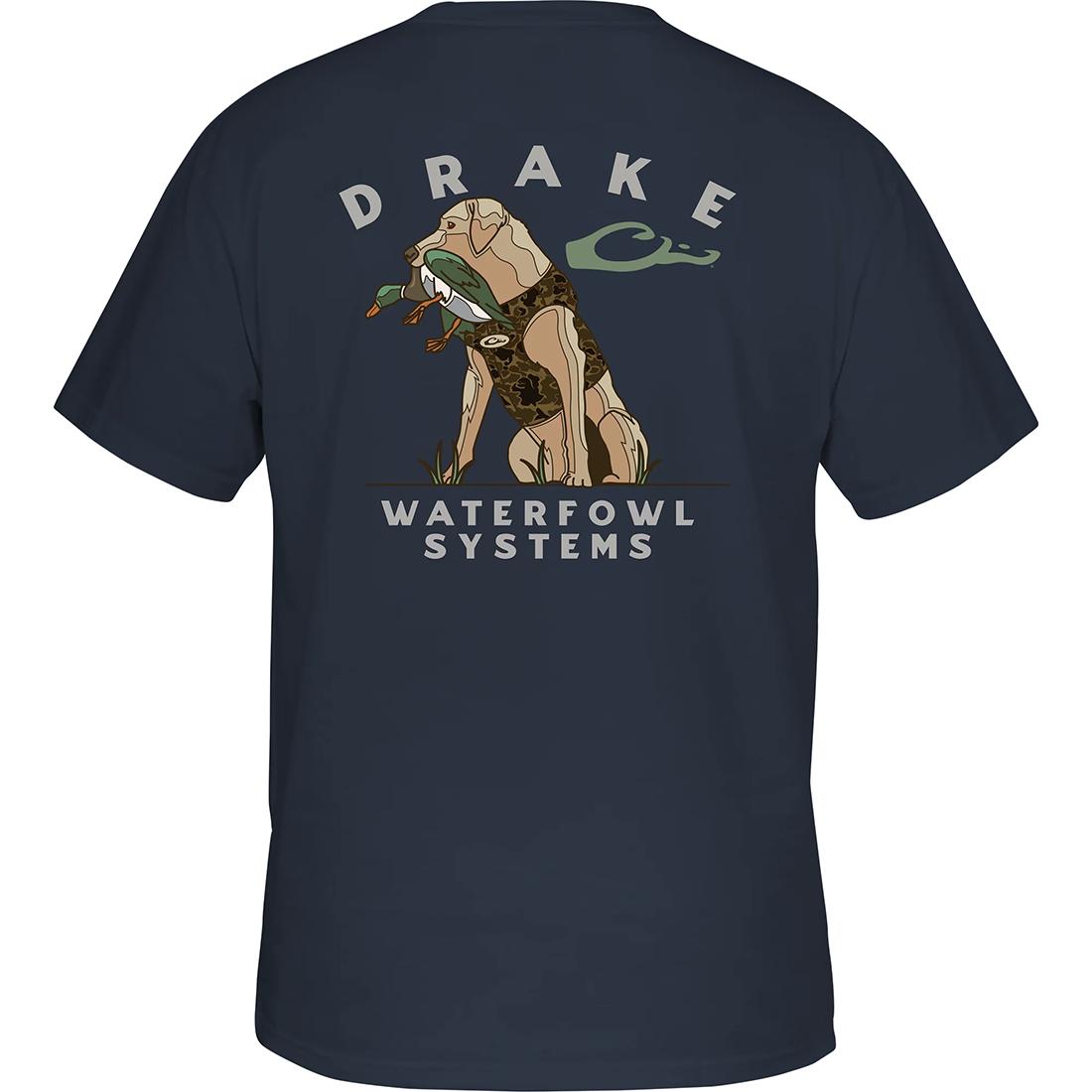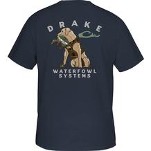 The Drake Waterfowl Graphic Tee is constructed with a 60% cotton and 40% polyester blend which supplies softness and comfort. The Drake Waterfowl Graphic Tee has a Drake logo on the front pocket and depicts a Yellow Lab from the Retro Series of back graphic tees.