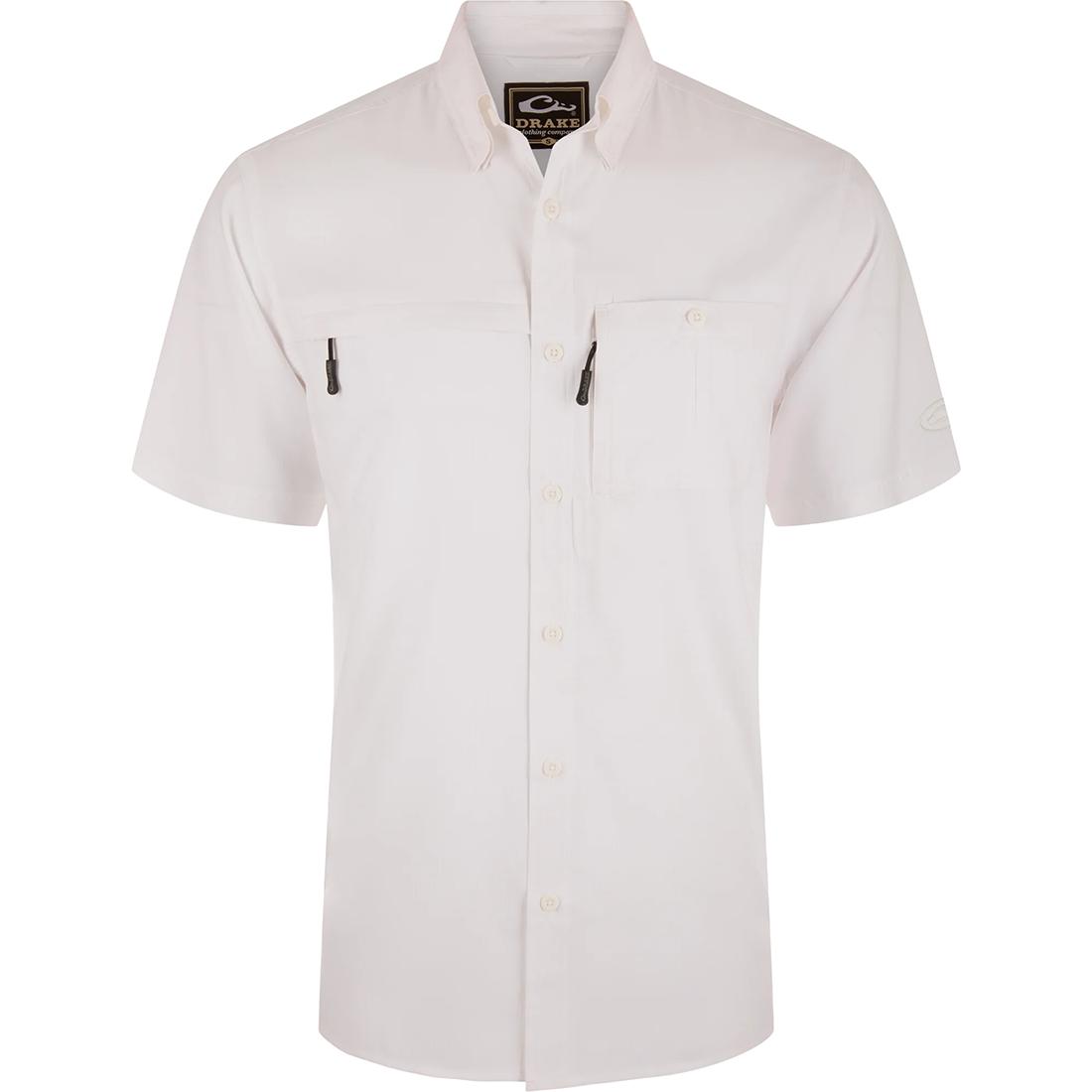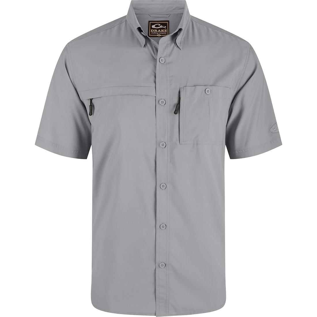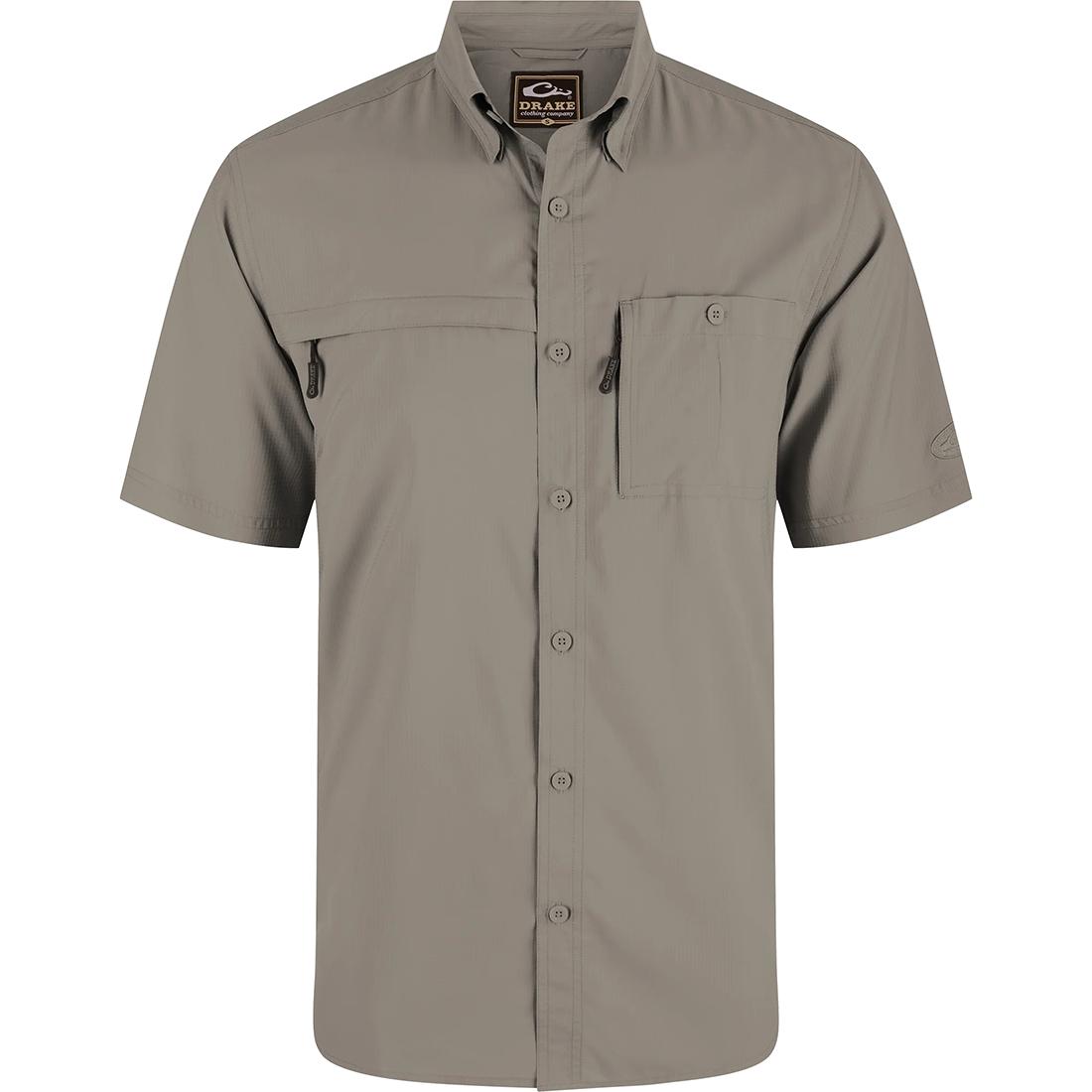 The Drake 8 Shot Shirt is made from 100% Polyester Dobby fabric featuring the exclusive Old School Camo pattern. The performance fabric is featherweight at 71 GSM which allows moisture to wick quickly from the body. It also has a UPF30 rating for sun protection and has a natural stretch for ease of movement. The Drake 8 Shot has a classic fit, a hidden button-down collar, and a vented cape back. The 8 Shot features a right chest pocket with a horizontal hidden zipper and a button through the left chest pocket with a hidden vertical zipper. It has a split tail hem which allows you to wear tucked or untucked. Classic styling and technical features will make The Drake 8 Shot one of your soon-to-be favorites.