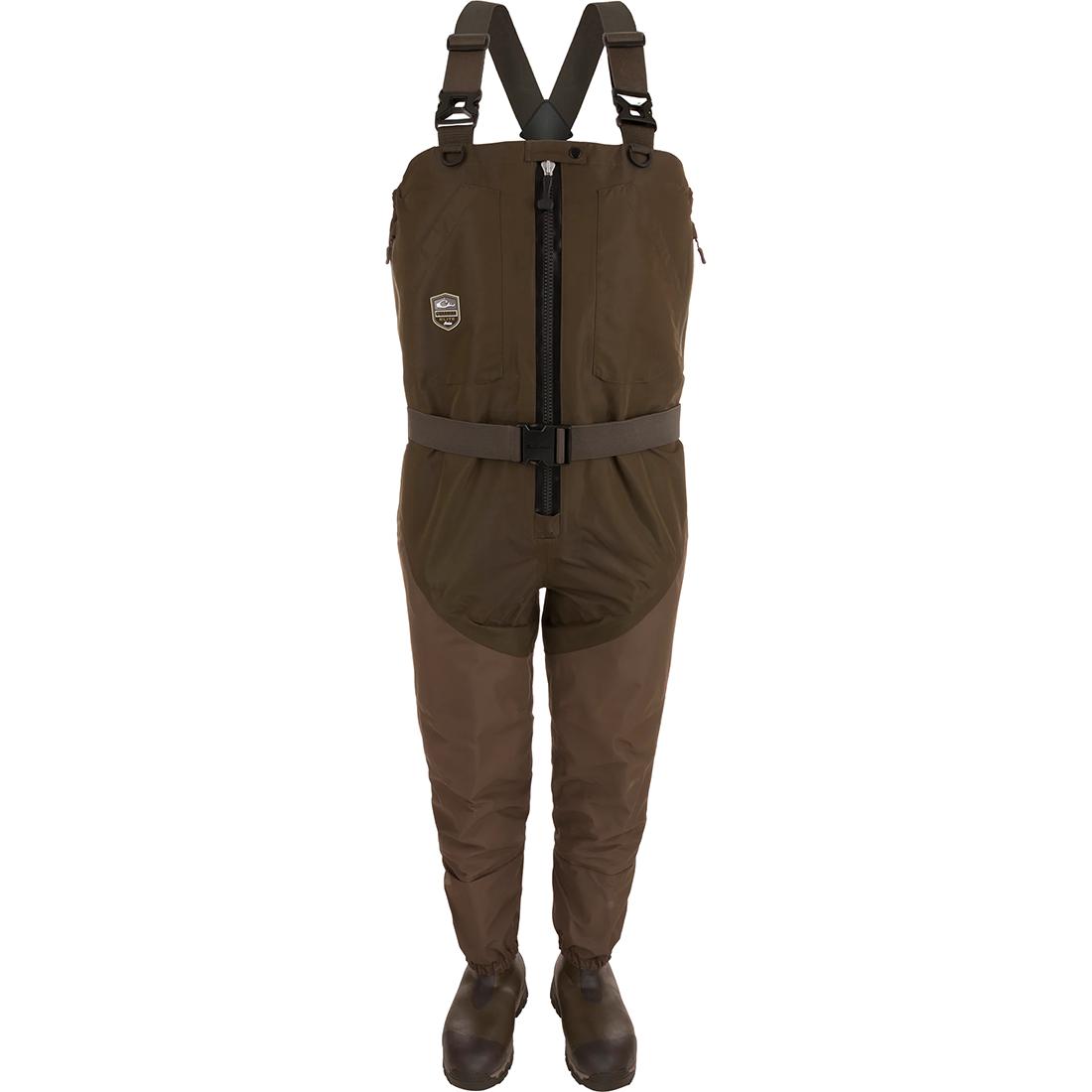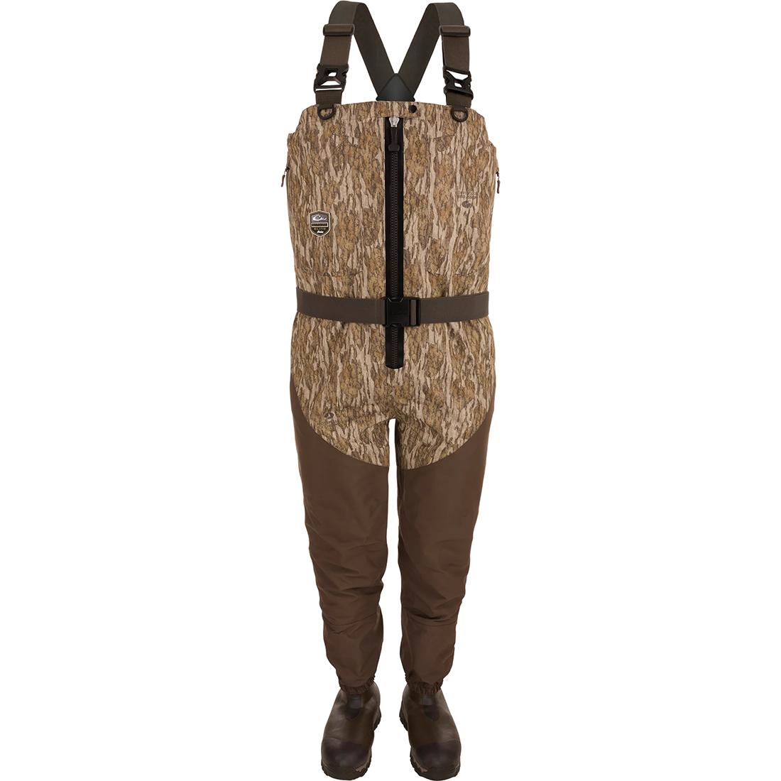 Constructed with waterproof/windproof/breathable, 4-layer upper body and 5-layer legs/lower body, this wader is built for unbeatable protection, comfort, and durability. The new and improved boot, with an EVA midsole and a rubber molded outsole, will give you a more comfortable fit, better traction and exceptional cushion whether you are hunting out of a boat, standing in the marsh or in the green timber. Featuring X-Crossing-Back Shoulder Straps, quick-access, Magnattach™ front call pockets, side elastic stretch panels and interior, fleece-lined handwarmer pockets and an extended, waterproof front zipper, the Guardian Elite HND Front Zip Wader has all the features you’ll need for the hunt.
