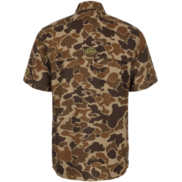 The Drake Youth 8-Shot Shirt is made from a lightweight Dobby fabric in solid and camo. The performance fabric is featherweight at 71 GSM which allows moisture to wick quickly from the body. It also has a UPF30 rating for sun protection and has a natural stretch for ease of movement. This shirt has a classic fit, a hidden button-down collar, and a vented cape back. It features a right chest pocket with a horizontal hidden zipper and a button through the left chest pocket with a hidden vertical zipper. It has a split tail hem which allows you to wear tucked or untucked. Classic styling and technical features will make this shirt one of your soon-to-be favorites.