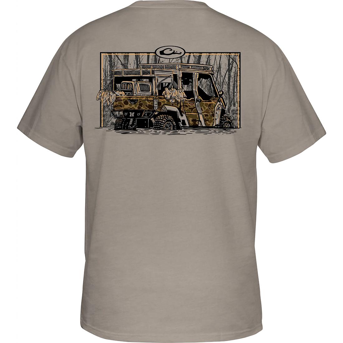 The youth version of the Drake Waterfowl Graphic Tee is constructed with a 60% cotton and 40% polyester blend which supplies softness and comfort. The Drake SXS has the Drake logo on the front and a side-by-side graphic on the back, from the Trucks of Drake Series of back graphic tees.