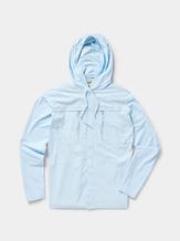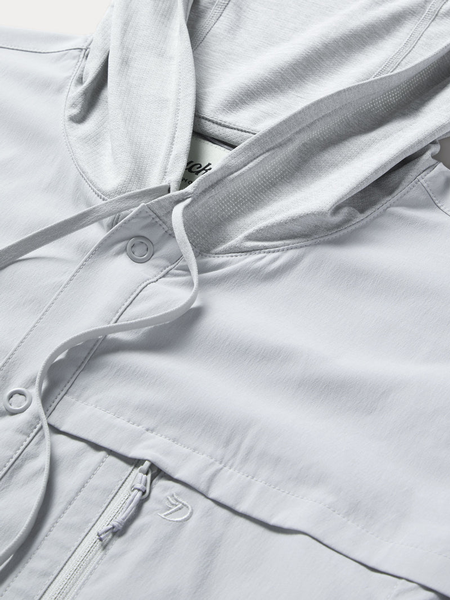- Hybrid shirting with 30+ UPF and cooling nylon body fabric and stretchy cooling arms and hood.