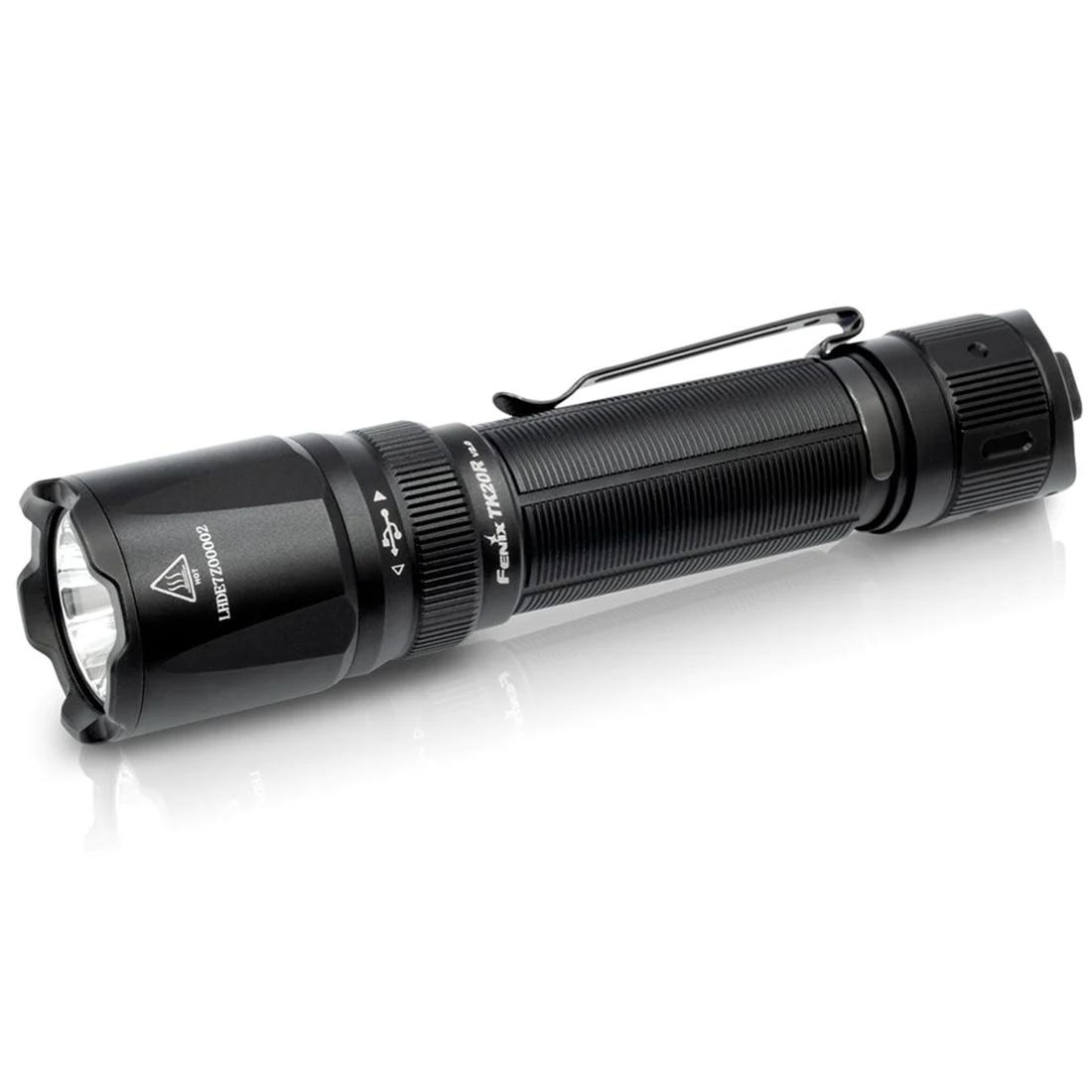 The Fenix TK20R V2.0 rechargeable flashlight features incredible performance by throwing a maximum 3000 lumens 1558 feet (475m). Quickly and easily operate the light, and choose between six lighting modes, by using the dual tail switches. Recharge the TK20R V2.0 by unscrewing the protective charging port cover and plug in using a USB Type-C cable. The TK20R V2.0 is durable and rugged with an IP68 dustproof and waterproof rating. Powered by an included rechargeable 5000mAh li-ion battery, the Fenix TK20R V2.0 rechargeable flashlight is a great tool for outdoors or tactical applications.
