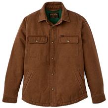 The Fleece Lined Jac-Shirt bolsters a trusted Filson staple with insulation for colder weather. It's built with sturdy 10-oz. cotton canvas for years of reliable service and lined with fleece in the body and polyfill in the arms. Garment-washed for a well-worn feel from the first wearing. Pleated shoulders for range of motion. Fleece-lined handwarmer pockets.