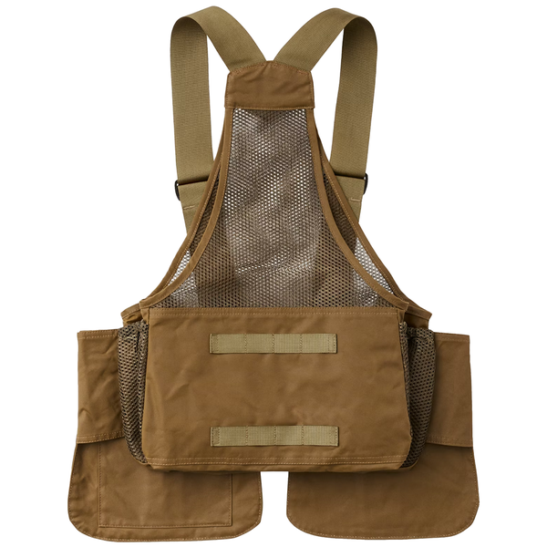 A breathable mesh rear panel makes the Mesh Game Bag perfect for both early season and late winter hunts, as well as the summer dog-training season. Midweight, water-resistant oil finish Shelter Cloth pockets hold shells, calls and other hunting accessories. The rear game pocket is sized for a limit of upland birds or small game. Two water-bottle pockets to keep you and your bird dog hydrated. Adjustable nylon shoulder straps and front buckle closure for a custom fit and easy layering.