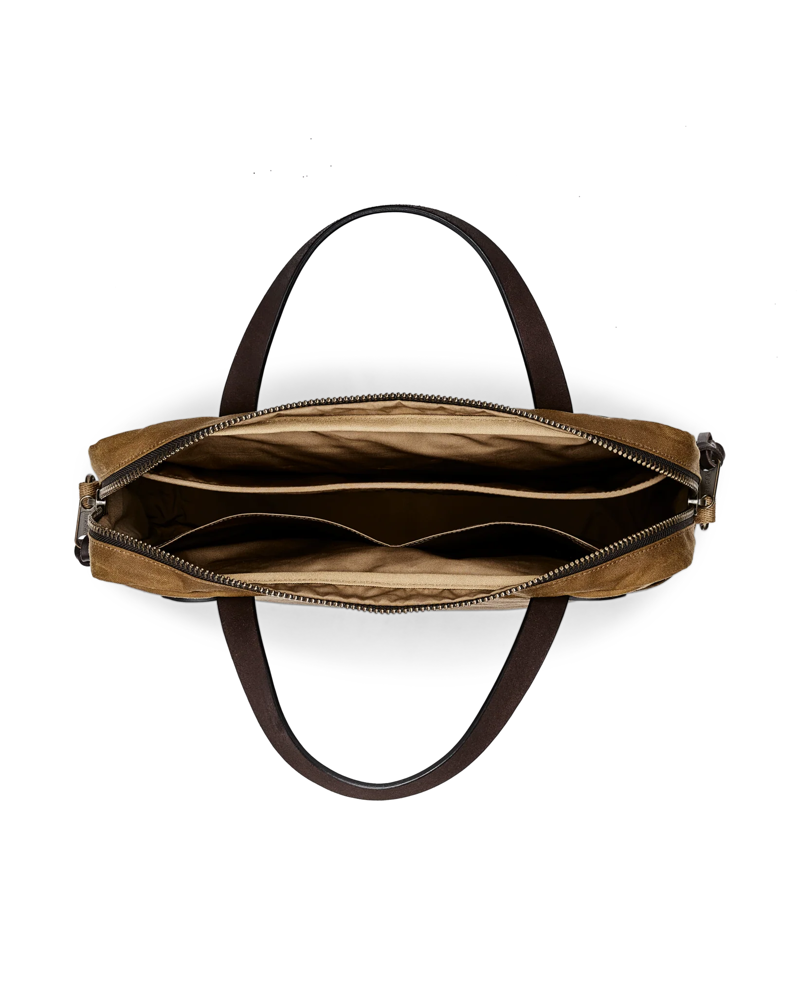 The Tin Cloth Compact Briefcase is padded to protect a laptop or tablet up to 15". The front stow pocket extends the full width of the briefcase for carrying files, and the rear pocket snaps closed to secure contents. The main compartment's heavy-gauge metal YKK zipper is built for a lifetime of service. The fabric is our signature Tin Cloth, a tightly woven duck canvas that's been thoroughly saturated with liquefied wax under heat and pressure for maximum water resistance. Tin Cloth's tight weave provides outstanding resistance to abrasion and punctures without excessive weight. The Bridle Leather handles are thick and strong for lasting service.. The interior is fully lined with cotton Cover Cloth. Detachable, adjustable webbing shoulder strap.