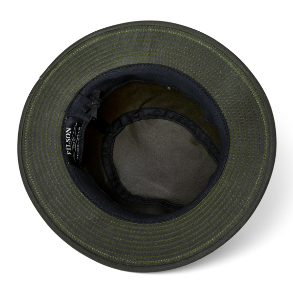 This full-brimmed hat keeps rain from running down the back of the neck while maintaining peripheral vision that can be sacrificed wearing a hood.