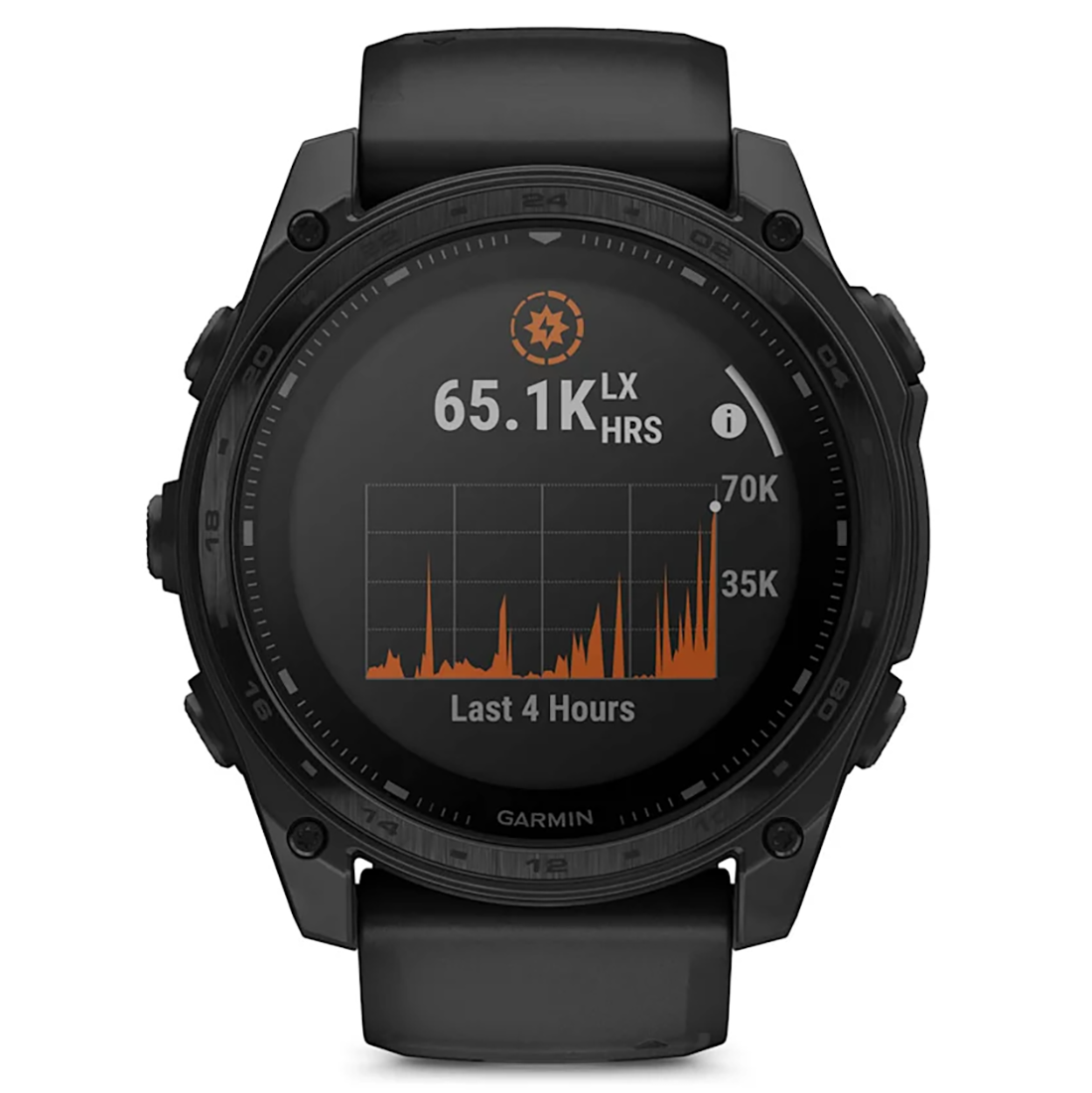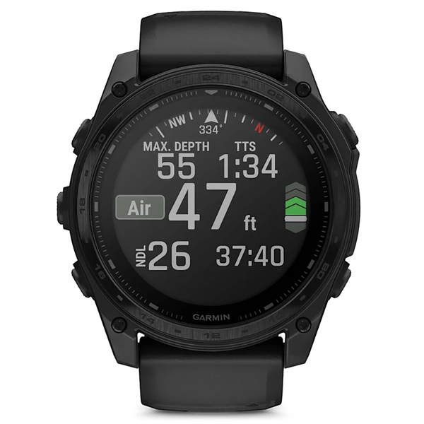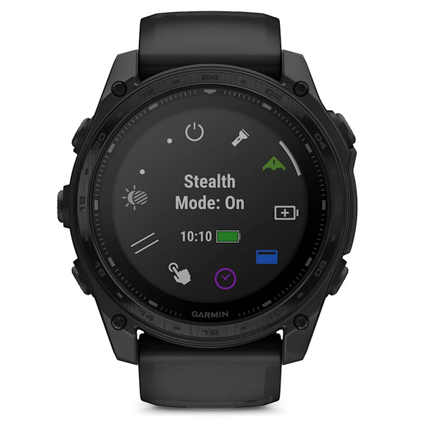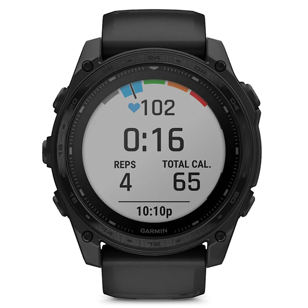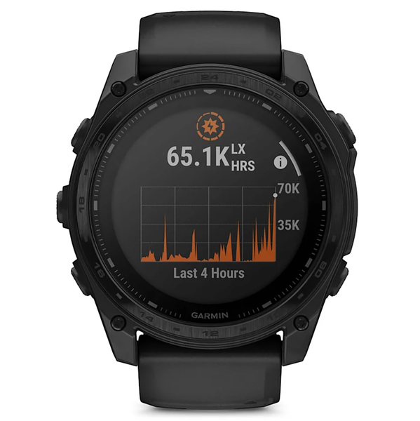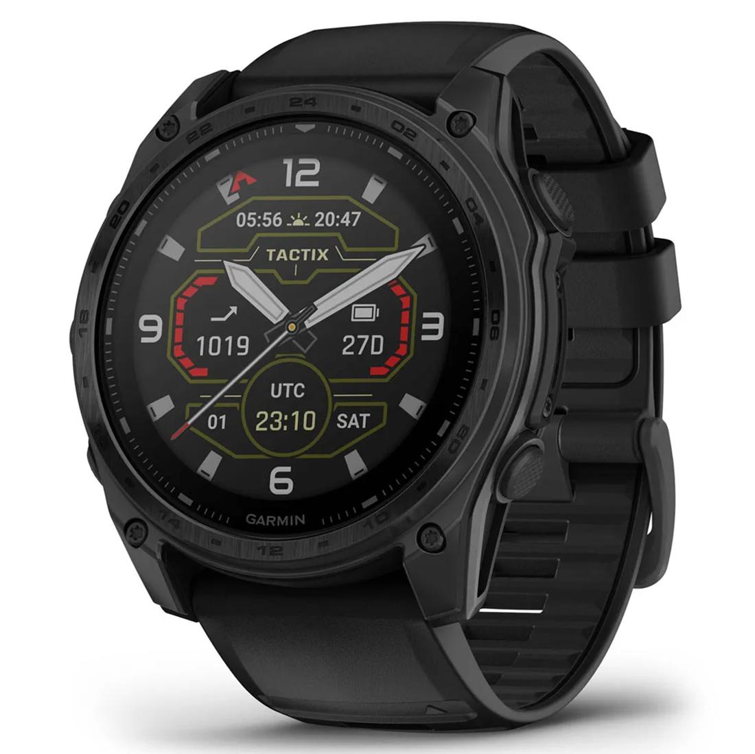 Rise above with tactix 8. It’s the ultimate tactical smartwatch, featuring a solar charged display, titanium bezel, sapphire lens, an internal speaker and mic for voice features and a 40-meter dive rating.