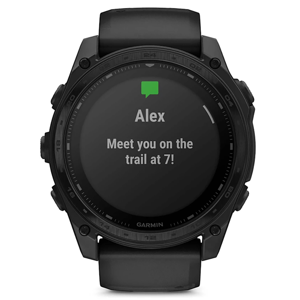 This advanced tactical GPS smartwatch features a bright 1.4-inch solar charged display, titanium bezel and sapphire lens, and enhanced graphical interface. It’s tested to U.S. military standards for thermal, shock and water resistance.