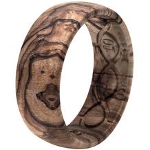Groove Nomad collection takes tough, outdoor elements and melds them with unique style. Designed for the adventurous wanderer, Nomad rings are the perfect way to be set apart from the crowd. Featuring Groove’s patented, breathable grooves and air-ports, Nomad rings are the perfect, safe, comfortable alternative to a traditional wedding band. Burled Walnut weaves dark and light tones together, evoking a timeless, premium look. Customized in Tennessee.