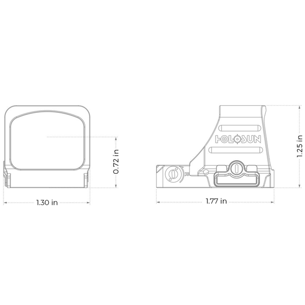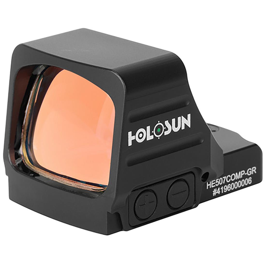 507Comp-GR handgun sight features a large 1.1” x 0.87” objective lens for enhanced shooting performance and Holosun’s new Competition Reticle System (CRS) with Holosun’s 540nm Green Super LED and up to 50k hour battery life with a 1632 cell.