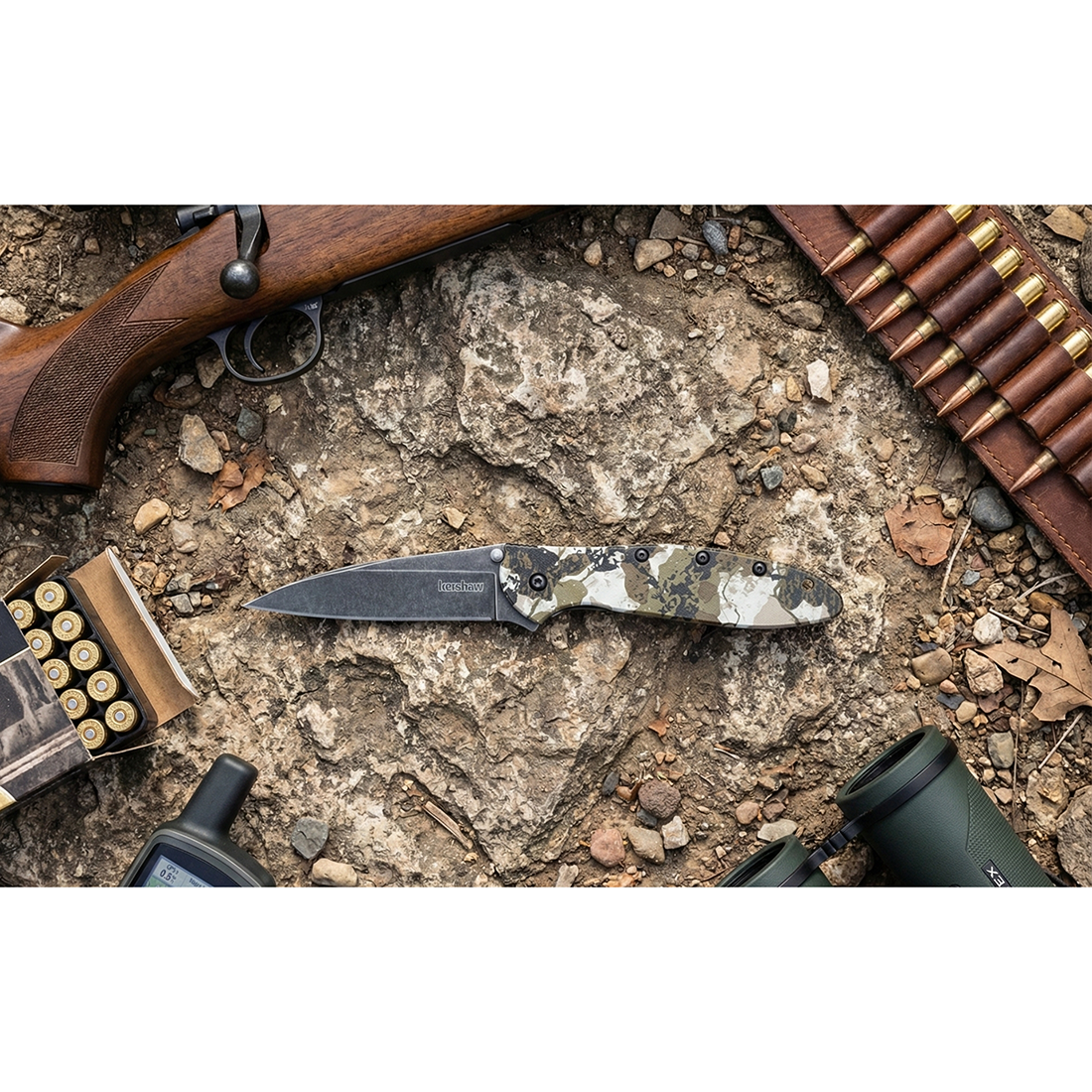 Born from a partnership between Kershaw and King’s Camo™, this Leek celebrates the hunting lifestyle with the rugged beauty of North American terrain. The 6061-T6 aluminum handle features the authentic XK7™ camouflage pattern, applied using Kershaw’s CCI technology for lasting detail and durability. Beneath the camo, the Leek’s precision-built design stays true to its roots: USA-made quality, a razor-sharp 14C28N blade, and fast one-handed opening ready for the field and everyday carry.