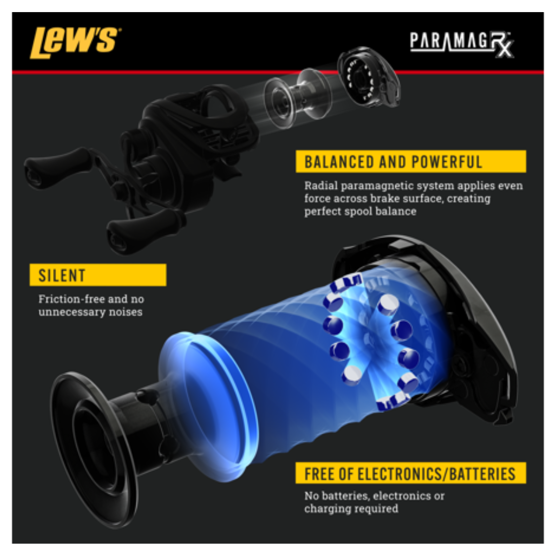- PARAMAG® RX BRAKING SYSTEM offers perfect spool balance, extreme braking power and precise braking adjustments for smoother casts and reduced backlash
