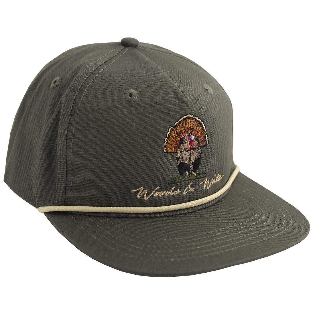 Embroidered Strutter on front with Woods & Water script.