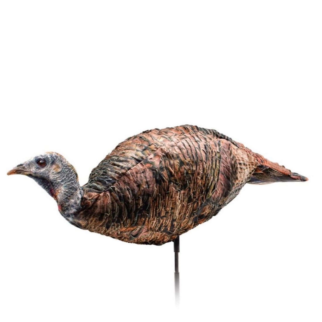 Miss Purrfect XD is the result of years of constant tweaking and research to find the perfect balance between realism, portability and lightweight. They added an all new fabric that better replicates the natural iridescence of turkey feathers while still allowing the decoy to compress for easy transport. The addition of taxidermy eyes adds another level of realism. And they didn’t stop there. They developed a special zippered stuff pouch to make carrying the folded decoy even easier. Don’t worry, if you like the straps they included them as well. And with the Perfect Pose Technology you can put this hen in a feeder, looker or breeder pose. It’s the only decoy on the market with that kind of versatility!