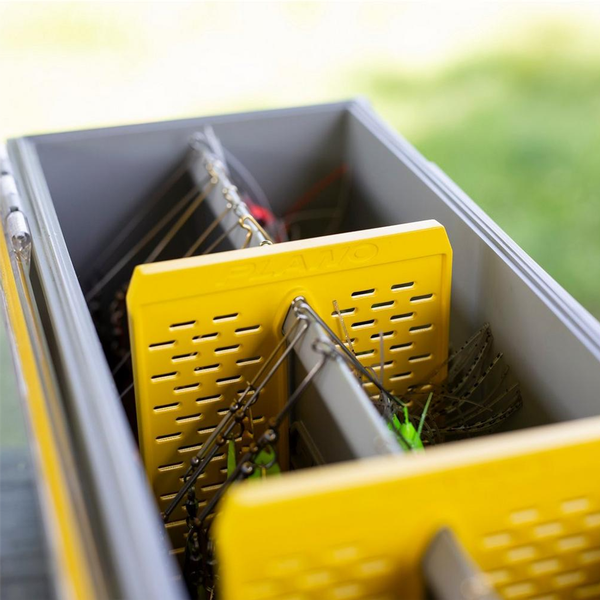 The Edge Master Spinnerbait Tackle Box features a new and innovative design specific to spinnerbait tackle. This functional tackle box kit also includes Rustrictor rust preventative in base, Dri-Loc watertight seal, and is enforced with water-absorbing desiccant material for effective and safe tackle organization.