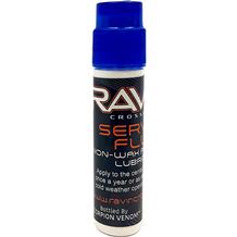 - Non-wax polymeric lubricant for applying to the center serving of string