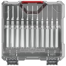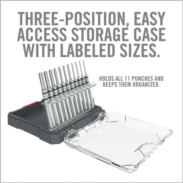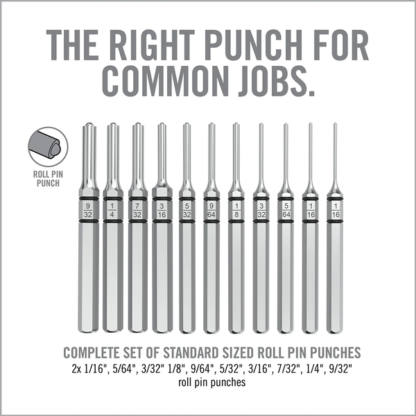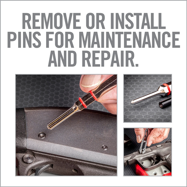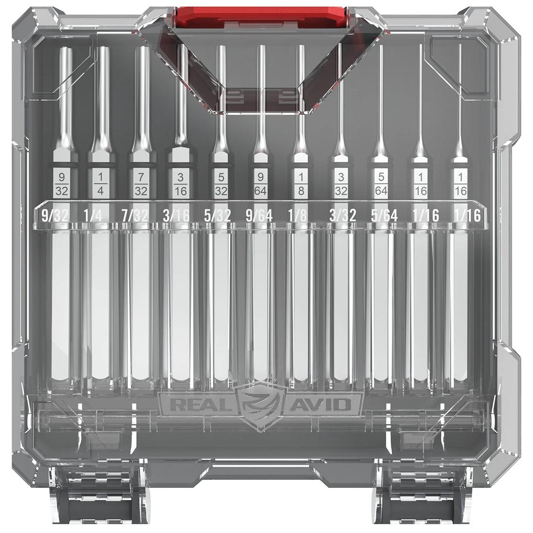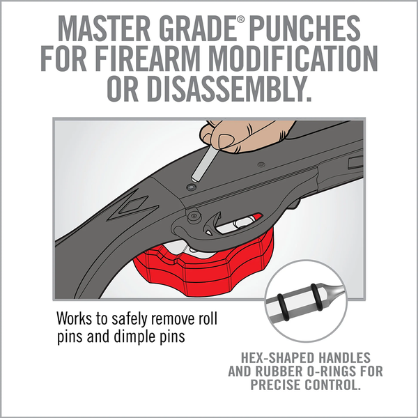 Gunsmithing punches are core tools needed to modify or disassemble firearms. The Accu-Punch 11-Piece Roll Pin Punch Set is designed from the ground up to work better with firearms. The punches are made of hardened steel with a nickel plating to resist corrosion. The hex-shaped handle and rubber O-rings provide precise control during use.