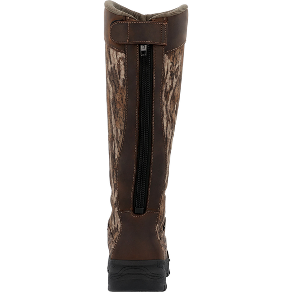 The Rocky Spike 16" kids snake boot will keep your little one's feet protected no matter the adventure. Waterproof full grain leather with 900 denier Cordura® and the guaranteed Rocky® Recycled Waterproof Construction will allow for the environment to lead their path without getting soggy feet. Add in 16 inches of high abrasion Mossy Oak® Bottomlands covered snake guard for protection you can trust while they are out in the brush. YKK back zippers provide a comfortable fit around their calf while keeping a tight seal to prevent any water leakage. Rocky® Rebound footbed and rubber outsole allow for comfort and traction on rugged terrain.