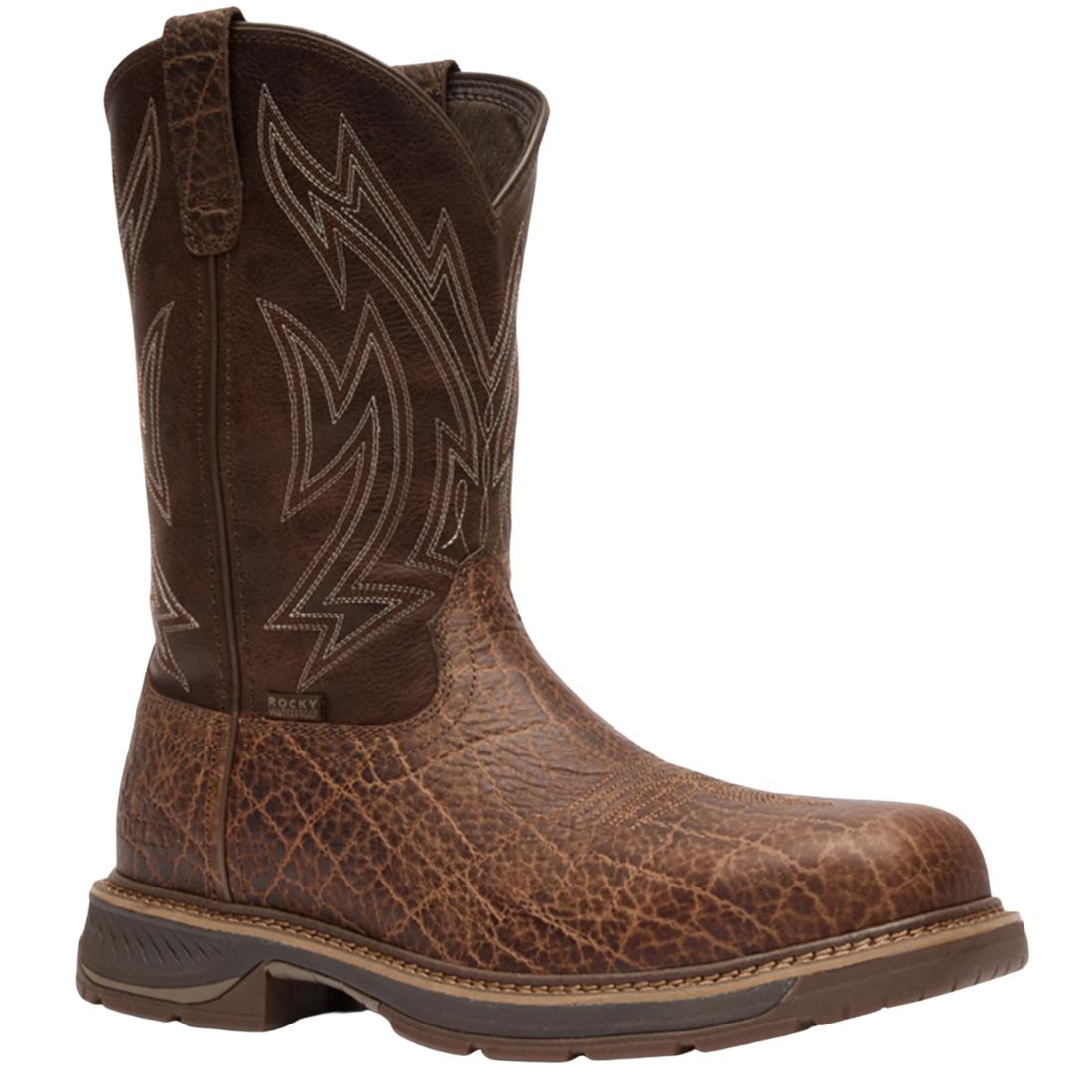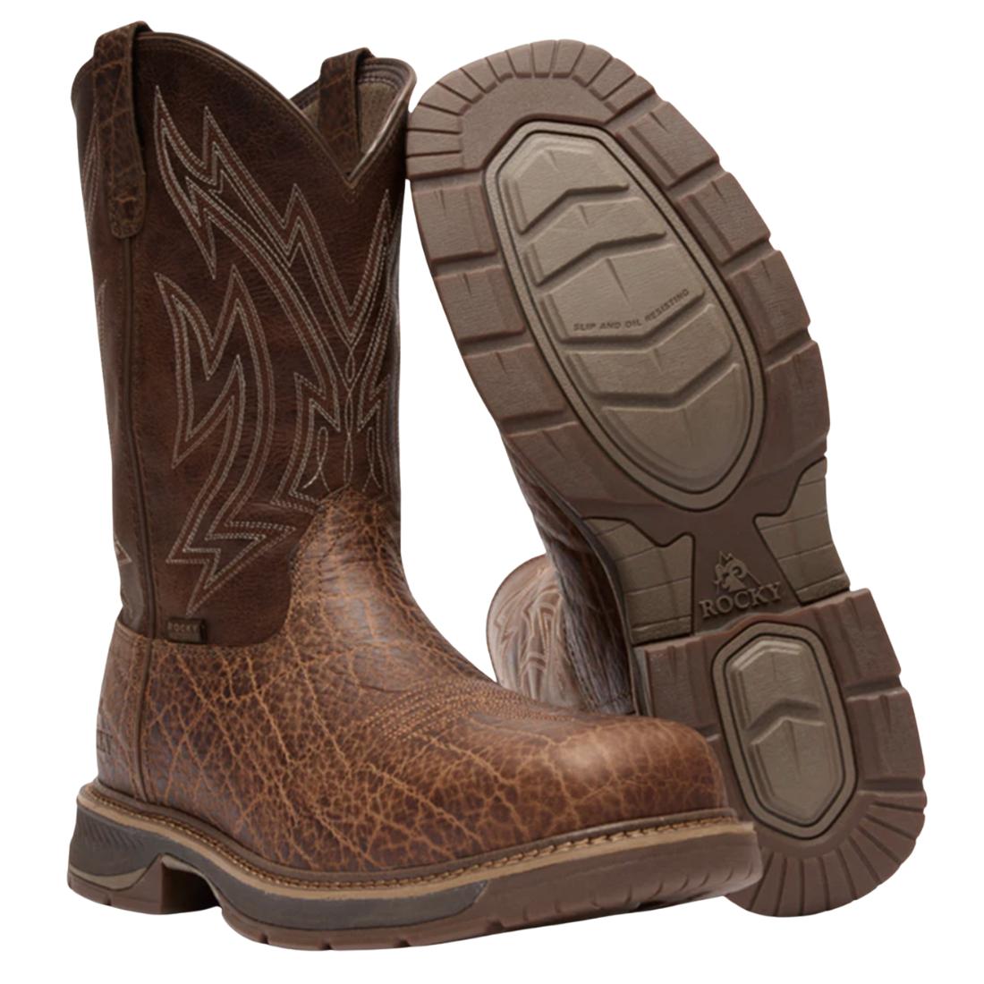 Inspired by the Original Ride, the Ride LTE offers the same trusted durability in a lighter, more comfortable design. This versatile collection features waterproof full-grain leather and an oil- and slip-resistant rubber outsole with an EVA midsole for all-day support. Designed for lasting comfort, the double-row stitch flex welt construction ensures a flexible, secure fit, while the Rocky® Air-Port Lite® sponge PU footbed—enhanced with memory foam and antimicrobial mesh top—helps prevent foot fatigue. Built for work and ranch life, the Ride LTE gives you confidence on the job, no matter the demands. This 11" boot meets ASTM F2413 protective toe classification and electrical hazard standard.