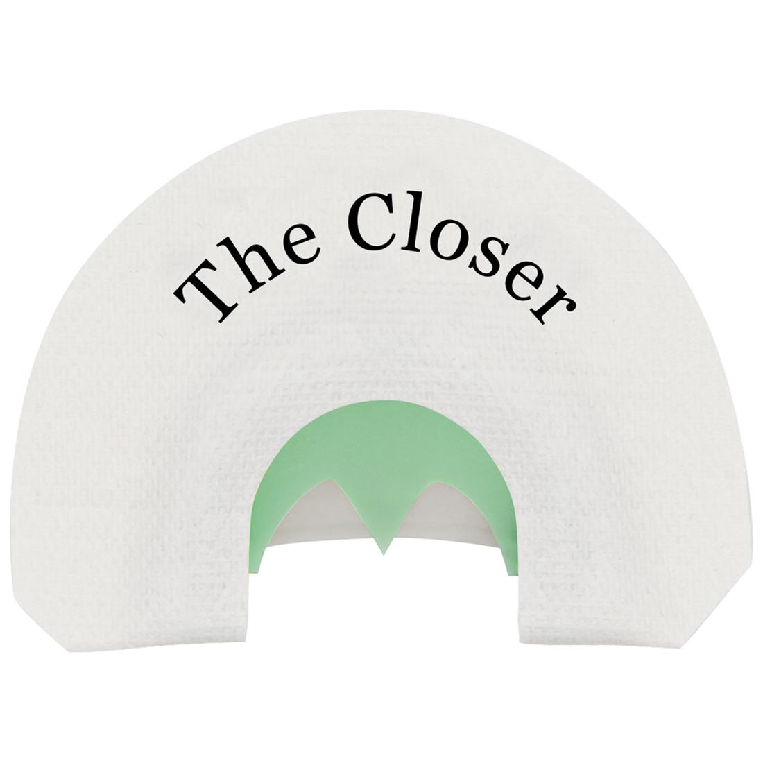 The Closer is a 2 reed call featuring a setback bat-wing cut. Consisting of 2 thin latex reeds set back in the frame, The Closer is the perfect call for using soft talk to close gobblers into gun range.