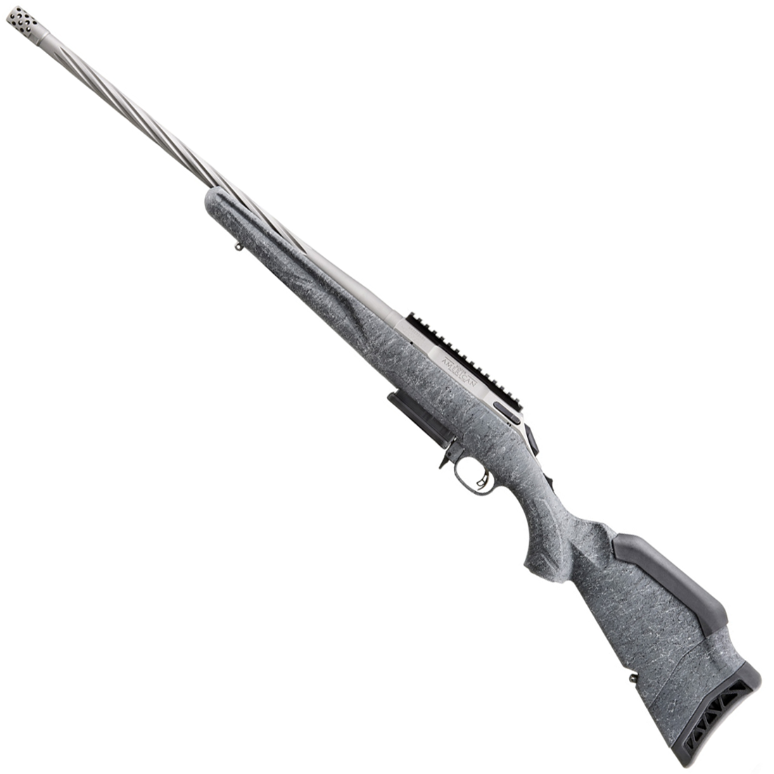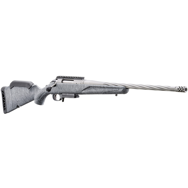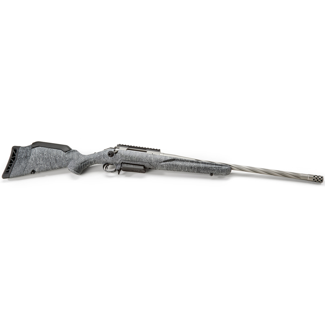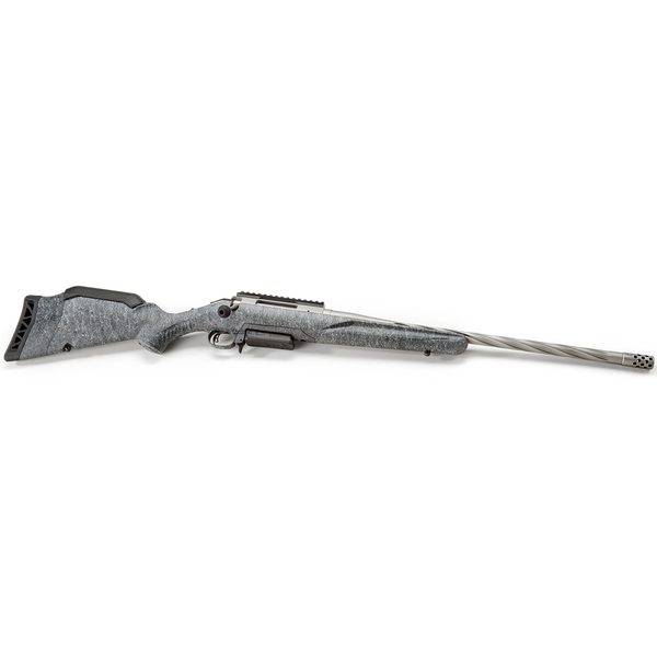 Professionally applied Cerakote coating on barrel, muzzle brake, receiver and bolt handle results in a durable, easy-to-maintain finish. Medium contour barrel features deep spiral flutes that reduce weight at the muzzle end of the barrel to improve balance without sacrificing stiffness or accuracy. Threaded barrel with factory-installed radial port muzzle brake is cold hammer-forged, resulting in ultra-precise rifling that provides exceptional accuracy and longevity.