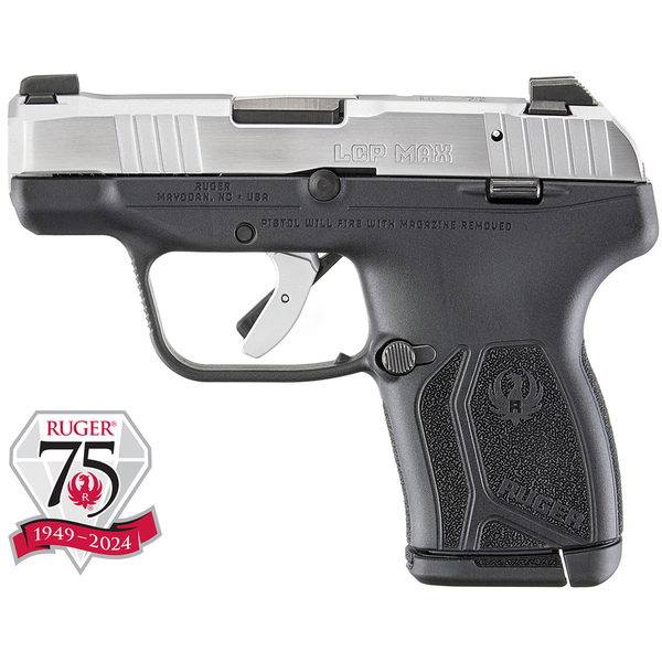 Compact and lightweight, the LCP® MAX continues to be the definitive pocket-sized personal protection pistol. Matte stainless steel slide features polished sides resulting in crisp cocking serrations. Standard 10-round magazine ships with flush floorplate installed.