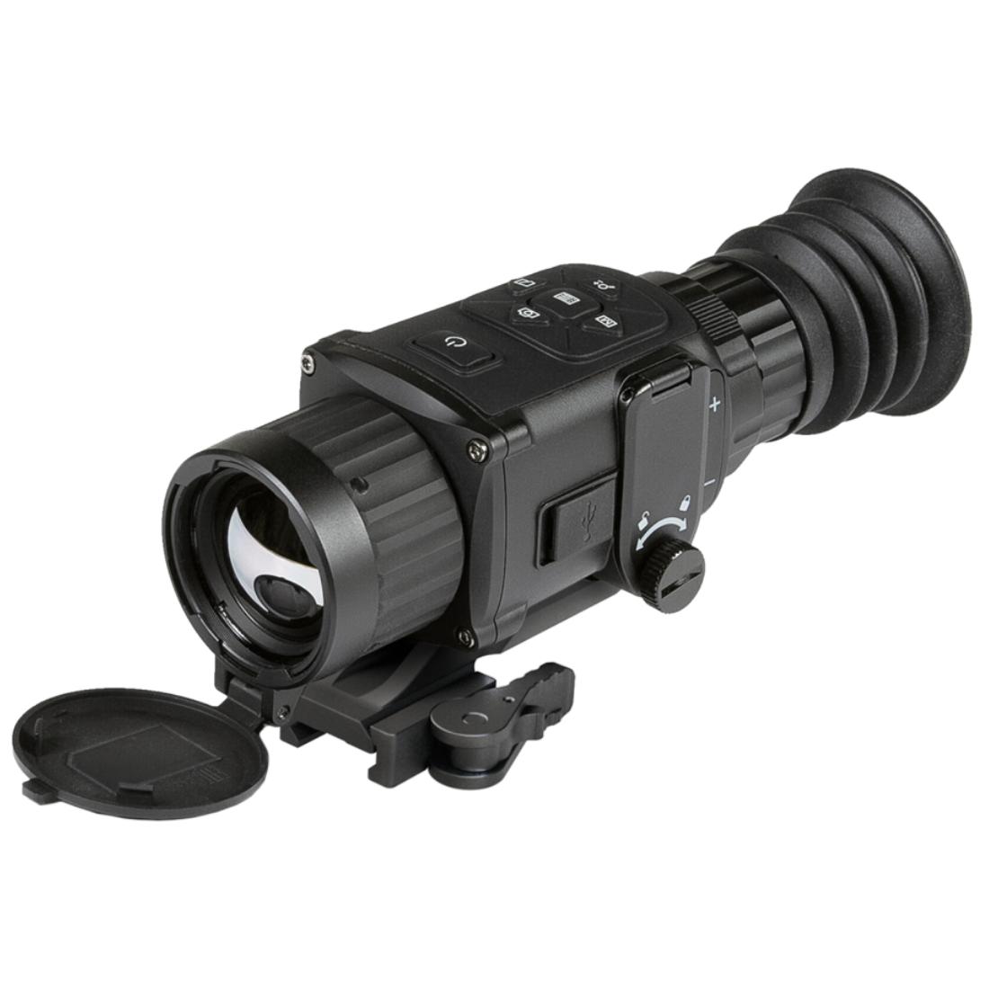 The Rattler TS25-384 is a perfect addition to any hunter's arsenal. Equipped with a 25mm germanium lens and a 384x288 resolution thermal sensor, this unit has a detection range of 880 yards, and a base magnification of 1.5X. This low base magnification allows for a wide field of view, which many hog hunters prefer, as it allows them to see and track multiple animals in a group at once. The Rattler series of thermal scopes were specifically designed to be compact and lightweight, as this not only ensures its small footprint can be used on a multitude of shooting platforms, but also gives the series secondary use as a thermal monocular as well.