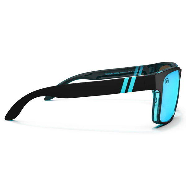 Sometimes you just gotta get out there and chase the horizon… and ‘Fortune Blue’ was made for big pursuits. Part of our ‘Canyon’ collection, these are classic wrap-style shades with polarized power for shielding your vision from the sun’s rays (including your periphery)! They’re fit for adventure but also designed to dazzle, with ice blue lenses and a glossy azure interior that pops against a solid matte black exterior. Lucky you!