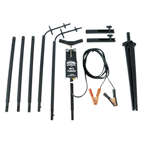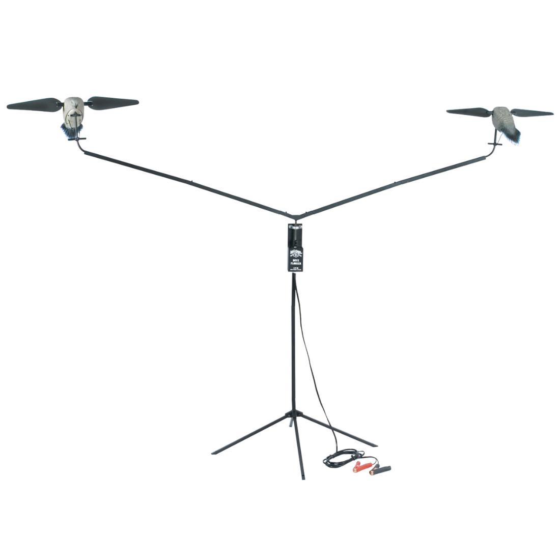 Get those doves on your lap with the Lucky Dove Flocker. Equipped with a rugged 12-volt motor and gear system, quick set quad stand, and arms that span 93” in diameter for realistic decoy movement. The Flocker rotary is designed for easy setup and transport. The carrying bag with shoulder strap holds the entire Flocker system, two motorized doves, and an additional pouch for your hunting accessories.