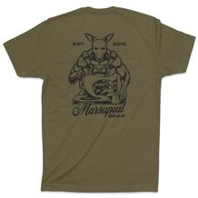 Marsupial Gear is made strong. Nothing shows that better than our new Marsupial Muscle Tee. Printed on a Next Level brushed cotton-poly tee for lived-in comfort and feel.