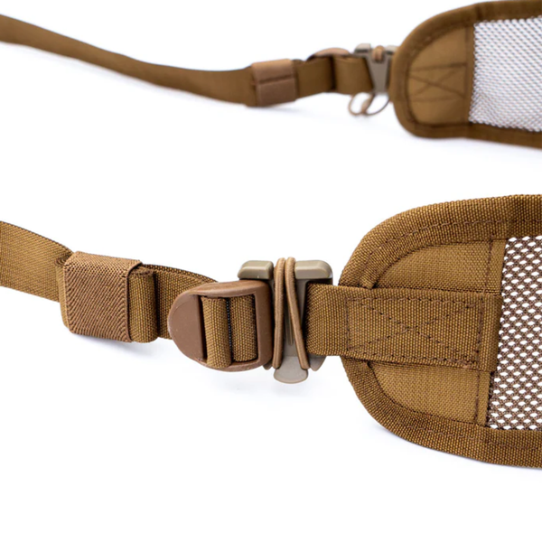 We also built the MVP around two off-the-shelf and user replaceable elastic ITW clips. This is designed to connect the MVP to your bridge loops and keep it EXACTLY where you want it for lower back support. We originally created some proprietary methods for this connection, but in the end we decided to make it roll-tide-simple.